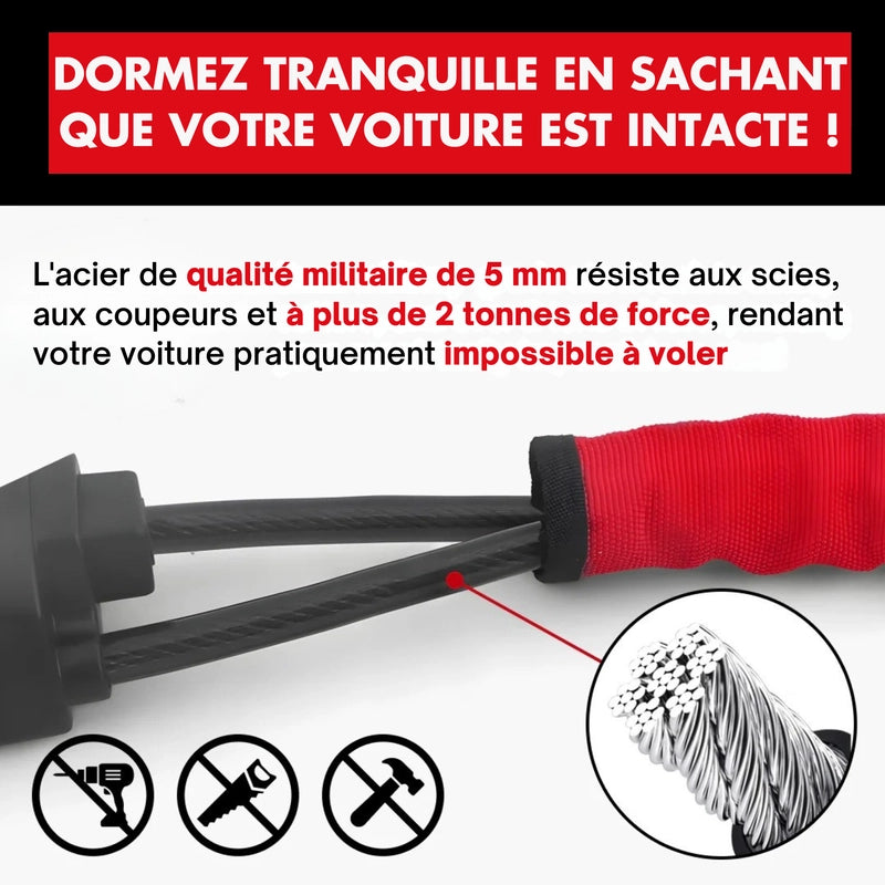 Non. Contrairement aux barres volumineuses, notre câble est revêtu pour protéger votre intérieur, et le mécanisme de verrouillage est lisse et sûr pour un usage quotidien.