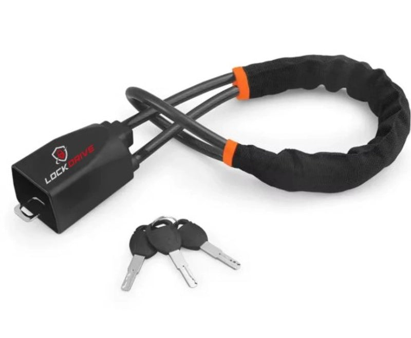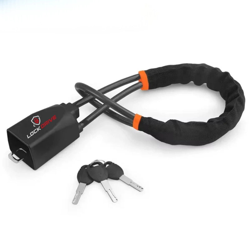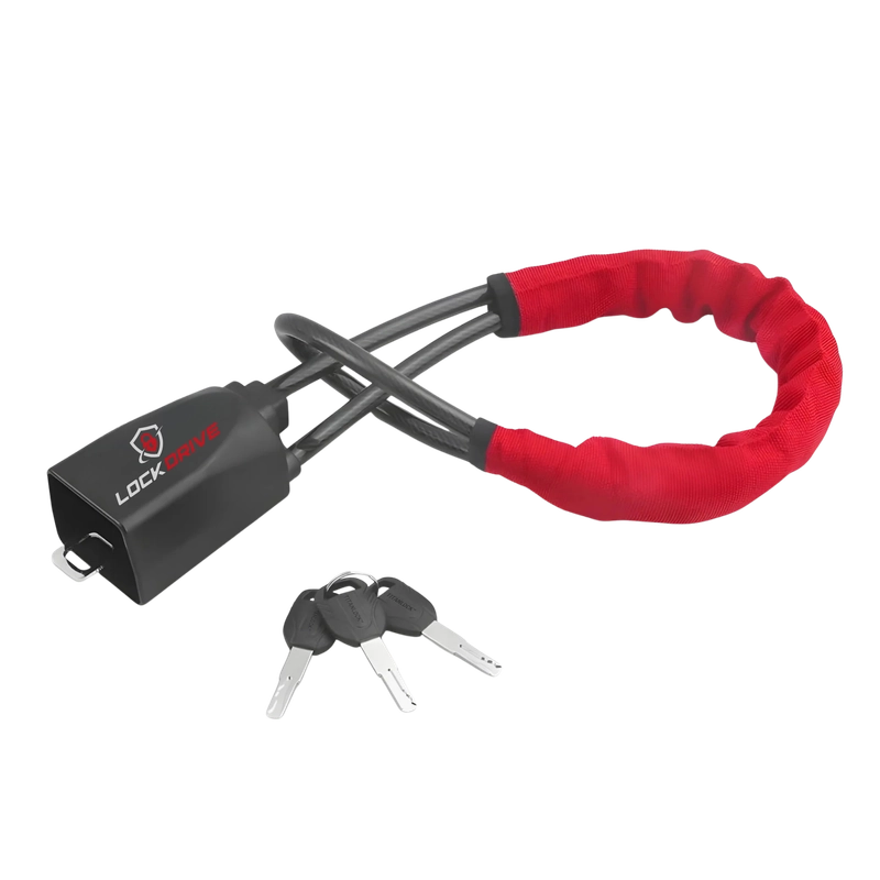 LockDrive est le cauchemar des voleurs. Fabriqué en acier tressé renforcé de 5mm avec un verrou anti-perçage Classe B, il résiste aux coupe-boulons, scies, perceuses et pieds-de-biche. Une fois installé, le retirer sans la clé est presque impossible.